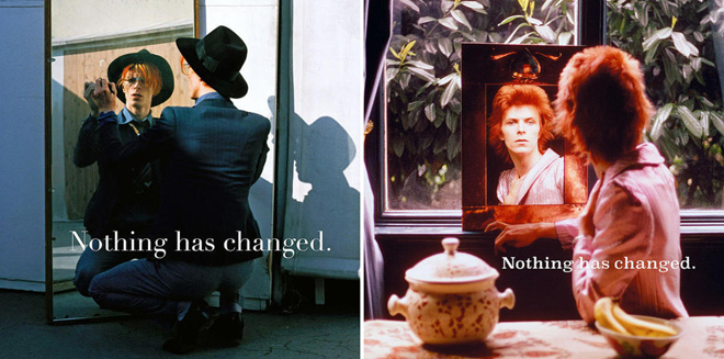 David Bowie muestra otras dos portadas del recopilatorio “Nothing Has Changed”, que abarca toda su carrera. La que publicamos ayer (que puedes ver más abajo) corresponde a la edición de lujo en tres CDs y digital, que cuenta con una fotografía de Jimmy King de 2013. Arriba puedes ver las correspondientes a la edición en dos CDs y digital, con una fotografías de Steve Schapiro de 1975, y la del doble vinilo, que está ilustrada con una fotografía de Mick Rock de 1972. En todas, Bowie aparece frente al espejo.