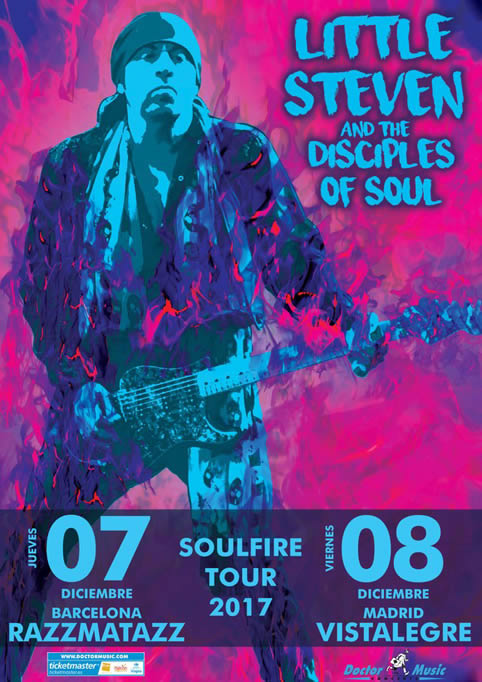 Little Steven (alias de Steven Van Zandt, guitarrista de la E Street Band de Bruce Springsteen) anuncia dos conciertos en España junto a su grupo The Disciples Of Soul en diciembre. El día 7 en Barcelona en la sala Razzmatazz y el día 8 en Madrid en Vistalegre.
