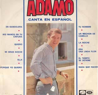 Sin embargo, nunca le faltó a nadie que lo buscase un buen disco de Adamo. Fue éste un extraordinario compositor melódico, quizás el italo-francés más dotado de su generación, un enorme potentado de la melodía sentimental que hizo todas las canciones que quiso, que todas las vendió a espuertas y que probablemente, tras ese desbordante caudal melódico y un leve tono existencialista quizás difícil hoy de detectar, no había mucho más. Pero en sus buenos días nadie pudo discutirle nada, su reino fue tan específico de ese mundo y de esos años 60-70, que si su legado tuviese hoy que pasar un tribunal igual era injustamente condenado sin piedad. Que no cuenten con mi voto. Recién acabo de reencontrarme con su primer LP en español del año 1966 (hacía mucho tiempo que no lo hacía) y tropiezo de nuevo con mi favorita, la aún excitante ‘Porque yo quiero’, mecida con los magnéticos arreglos de Jean Claude Vannier, y otras clásicas de la soledad juvenil como ‘En bandolera’, ‘Mi gran noche’, ‘Mis manos en tu cintura’ o ‘El tiempo se detiene’, y recuerdo que esas pesarosas melodías ejercieron de contrapeso sentimental de mi otro lado soul-garage-psicodelia en los años de instituto. Todo ello en un disco que si nadie lo quiere por un euro, yo me lo quedo sin mayor problema.