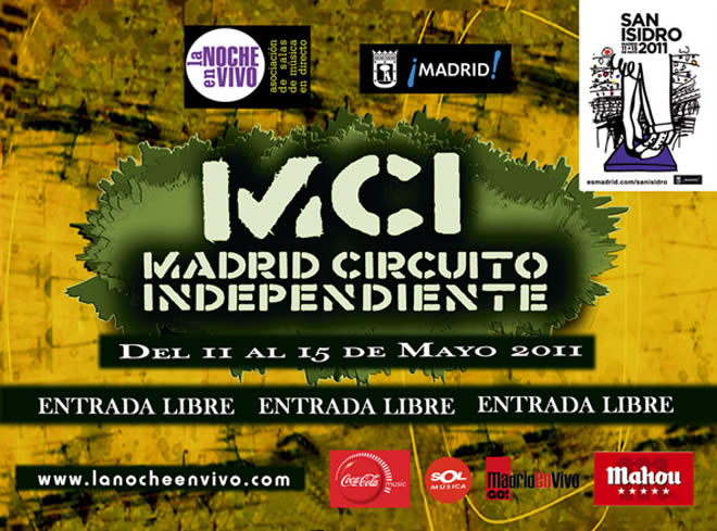 Del 11 al 15 de mayo, en el marco de las Fiestas de San Isidro, tendrá lugar la quinta edición de Madrid Circuito Independiente, organizado por La Noche en Vivo, en la que 24 grupos presentarán “sus recientes trabajos de forma autoproducida y/o de la mano de sellos discográficos independientes”. 18 salas de música en vivo “acogerán las propuestas de otros tantos sellos de música independiente. Los 18 sellos y/o trabajos autoproducidos seleccionados desarrollan su actividad en Madrid y han sido escogidos por su dinamismo, diversidad de estilos y su apuesta por las nuevas tendencias”. La entrada a todos los conciertos es gratuita, hasta completar aforo.
